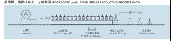 Decoiling — feed-in (put steel coil into the first feeding roller) — leveling — roll forming — hydraulic shearing — run out table